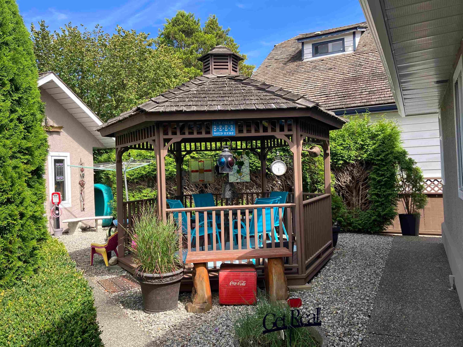 Welcome to this charming 4 bedroom 2-storey home tucked in the desirable McNally Creek area, set on a spacious 10,000+ sq. ft. lot with lane access. Thoughtfully designed with a primary bedroom and 2 additional bedrooms on the main floor, this home offers flexibility and comfort for families of all sizes. An additional bedroom and bathroom upstairs with a recreation room. Sunny exposure and a beautifully landscaped garden with a storage shed—perfect for outdoor living and garden enthusiasts. Conveniently located minutes from White Rock Beach, Highway 99, top schools, and public transit, this property combines everyday convenience with peaceful suburban charm. Large driveway with ample parking.