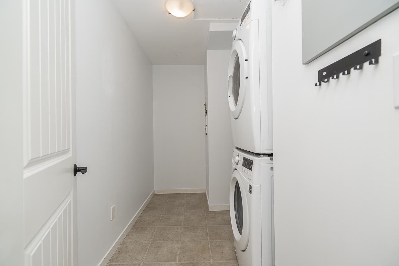 Bright and spacious 2-bed, 2-bath top-floor condo in the thoughtfully designed Uptown building. Vaulted ceilings create an open, airy feel, while the functional layout offers flexibility for everyday living. Enjoy beautiful views of Mount Baker right from your living room window. A rare, dedicated laundry room with extra storage adds practicality, and two side-by-side underground parking stalls make coming and going effortless. Centrally located and walking distance to schools, parks, shopping, transit, and everyday amenities, this home offers a comfortable, low-stress lifestyle with long-term value and a place that truly feels easy to call home.